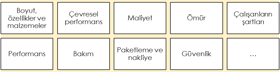 Buradaki en önemli şey, bir ürünün sahip olması gereken tüm gerekli koşulları içermektir, bu nedenle bu sınırlamalar dikkate alınarak sürdürülebilir tasarım açısından iyileştirmeler eklenebilir. PDS’nin sabit bir yapısı yoktur ve değerlendirilen ürün türüne bağlı olarak değiştirilebilir.